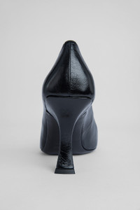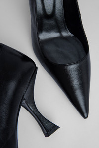 Creased leather pumps with a 9 cm leather-covered sculpted heel and squared back. Made from LWG-certified leather and finished with a pointed toe. DETAILS - Leather pumps - Crafted in shiny Italian lambskin - Leather-covered sculpted heel - Heel height: 9 cm - Squared back - Pointed toe - Made in Portugal SIZE AND FIT Fits true to size. Italian/European sizing