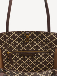 Patterned with By Malene Birger's Signature Flower print, this mid-sized tote bag is perfect for storing your everyday essentials. The spacious, leather-trimmed style is finished with practical carry handles, an adjustable closure and interior pocket. - Leather trim - Interior pocket - 48 x 28 x 12.5cm DETAILS COLOUR Warm brown COMPOSITION 100% polyvinyl chloride CARE Clean with damp cloth PRODUCT CODE Style #10174312J