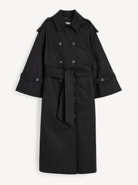 A cotton trench, such as the Alaya design, is truly made to stand the test of time. Ideal for transitional dressing, it features classic trench details — such as epaulettes, a storm shield and a double-breasted button closure. Wear it across seasons for years to come. - Loose fit - Model is 178 cm and is wearing a size 36 - Double-breasted - Detachable belt - Epaulettes - Storm shild - Side pockets - Inside pocket - Fully lined DETAILS COLOUR Black COMPOSITION 50% cotton organic, 48% cotton, 2% elastane CARE Dry clean only PRODUCT CODE Style #103331050