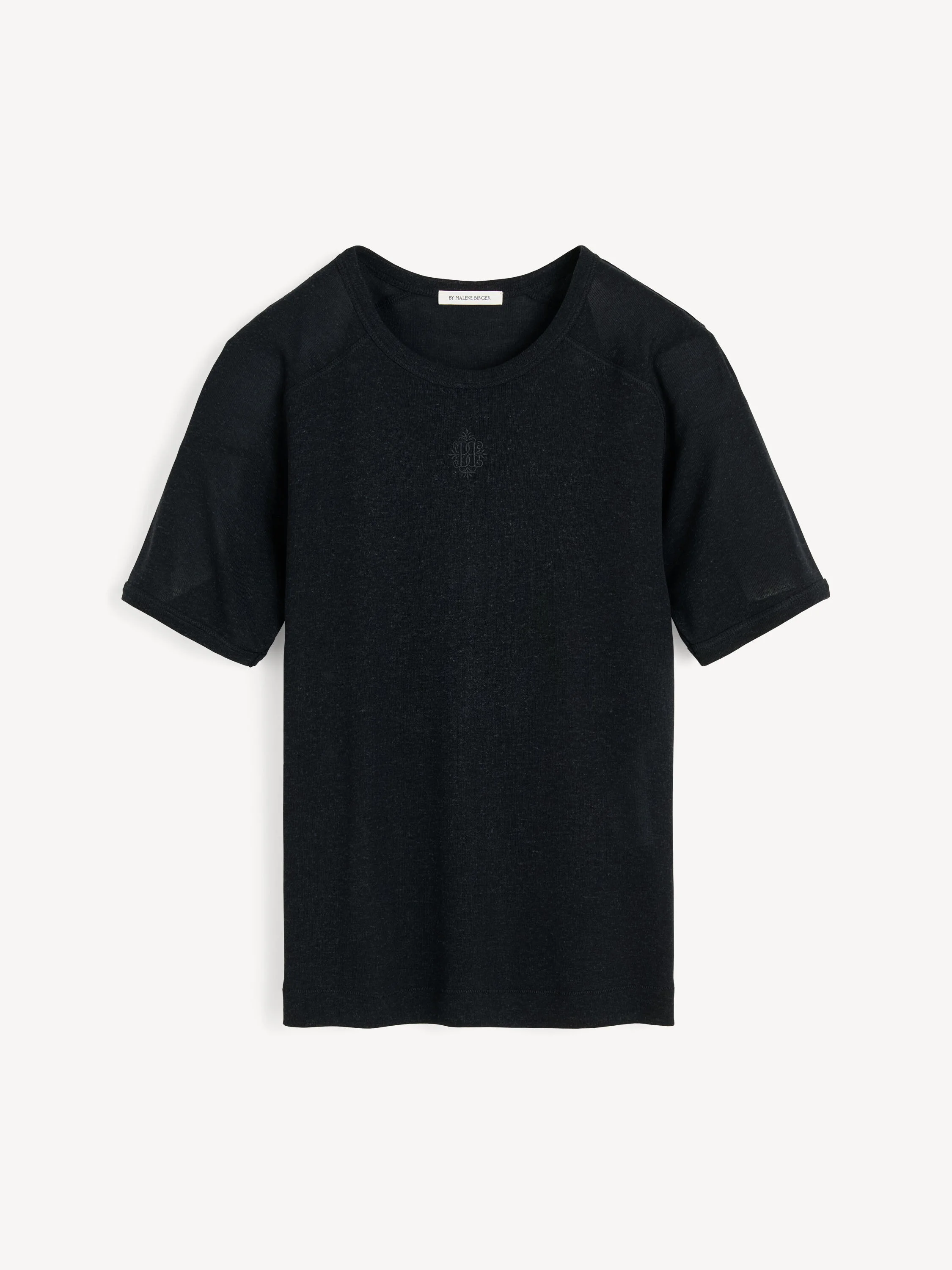 A versatile addition to any wardrobe, the Alezia T-shirt is made in a breathable and slightly sheer fabrication. Its classic raglan silhouette is decorated with a distinct monogram right on the chest. As the seasons transition, it’s the ideal layering piece. - Slim fit - Model is 179 cm and is wearing a size S - Sheer fabrication - Embroidered monogram - Raglan silhouette DETAILS COLOUR Black COMPOSITION 80% lyocell (tencel (TM)), 20% hemp organic CARE Delicate machine wash at 30°c PRODUCT CODE Style #103282050
