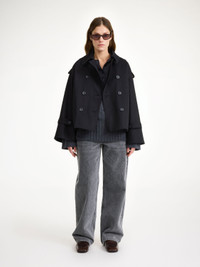 The Alisandra trench jacket is key to transitional dressing. Made from an organic cotton blend, the double-breasted design features epaulettes at the shoulders and buckled sleeve straps. You will find yourself reaching for yours for seasons to come. - Oversized fit - Double-breasted - Wide sleeves - Shoulder epaulettes - Buckled sleeve straps DETAILS COLOUR Black COMPOSITION 50% cotton organic, 48% cotton, 2% elastane CARE No Wash PRODUCT CODE Style #102484050