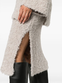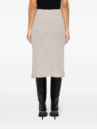 alpaca wool-blend midi skirt By Malene Birger indulges in a minimalist look in this alpaca wool-blend skirt made evident through its neutral grey tone and simple A-line cut. Highlights - Light grey - Alpaca wool-blend - High waist - A-line - Straight hem - Below-knee length Made in Italy Composition Alpaca Wool 60%, Merino 33%, Polyamide 7% SIZE & FIT Model measurements Height 5 ft 11 in(1.8 m) Bust/Chest 33.07 in(84 cm) Hips 37.4 in(95 cm) Waist 25.19 in(64 cm) FittingInformation This midi-length skirt is intended to be worn high on the waist Made with a midweight knit, this piece offers some stretch This piece fits true to size – take your usual size Washing instructions Hand Wash