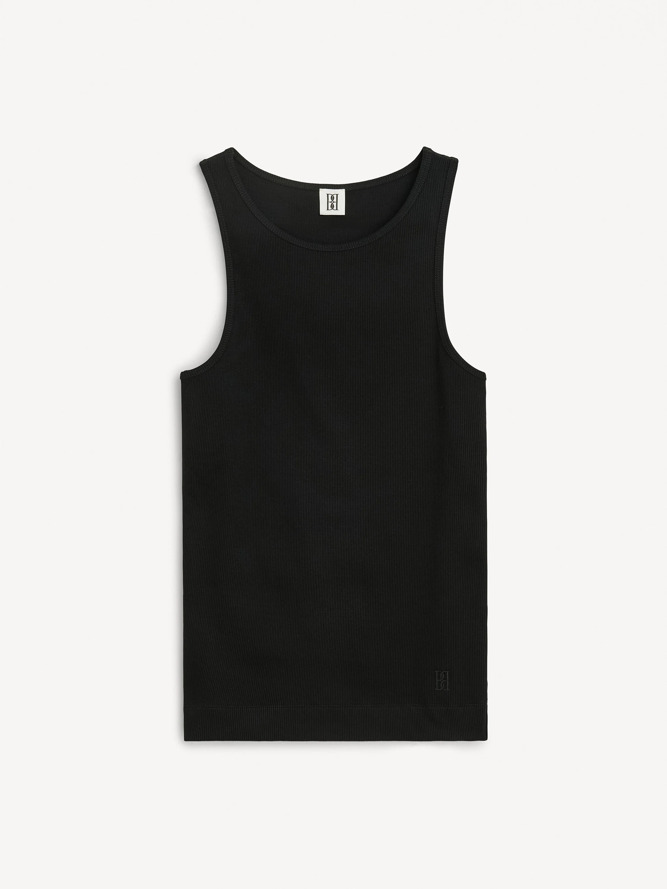 A indispensible part of any modern wardrobe, this minimalist tank top is cut from organic cotton with a hint of stretch and a soft, ribbed finish. The sleeveless silhouette has a slim fit, making it the ideal layering piece for the season and beyond. - Regular fit - Ribbed - Stretch-blend DETAILS COLOUR Black COMPOSITION 98% cotton organic, 2% elastane CARE Wash at 30°c PRODUCT CODE Style #101909050
