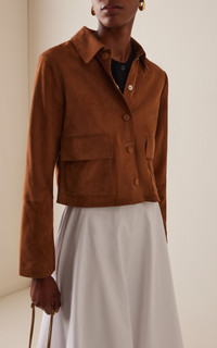ANNIE SUEDE JACKET PRODUCT DETAILS - Spring '26 - Regular fit, long sleeves, pointed collar, flap pockets, cropped length - Lined - Composition: 100% Goat Leather - Button fastening - *Professional leather cleaner - Made in India