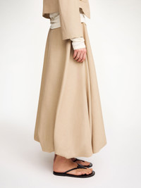 It might look simple at a glance, but the Aubrey skirt stands out with its bubble bottom. Made in a wool blend, the airy design sits high on the waist, closes with a zipper and cuts just above the ankle. Wear with its matching Frida blazer for a distinct ladylike work attire. - Regular fit - Model is 177 cm and is wearing a size 36 - Ankle length - Zip and hook closure - Voluminous bottom - Fully lined DETAILS COLOUR Dark Sand COMPOSITION 65% viscose, 35% virgin wool CARE Dry clean only PRODUCT CODE Style #103246144