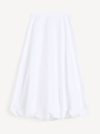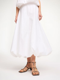 It might look simple at a glance, but the Aubrey skirt stands out with its bubble bottom. Made in organic cotton, the airy design sits high on the waist, closes with a zipper and cuts just above the ankle. Wear with its matching Mia top and the Sallon belt on sunny days. - Regular fit - Model is 177 cm and is wearing a size 36 - Ankle length - Zip closure - Elastic hem - Voluminous bottom - Fully lined DETAILS COLOUR Pure White COMPOSITION 100% cotton organic CARE Wash at 30°c PRODUCT CODE Style #103277090