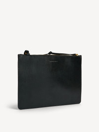 You will find yourself endlessly impressed by the versatility of the Aya purse. The ideal storage solution for slipping into the season’s oversized bags, this design is crafted from leather, and closes with a zip along the top. Note its subtle embellishment-a petite rendition of the monogram. - Zip closure - Adjustable shoulder strap - 25.5 x 18 x 1 cm DETAILS COLOUR Black COMPOSITION 46% leather recycled, 22% Natural Latex, 13% Fats, 12% polyu rethane, 7% Water CARE No Wash PRODUCT CODE Style #103357050