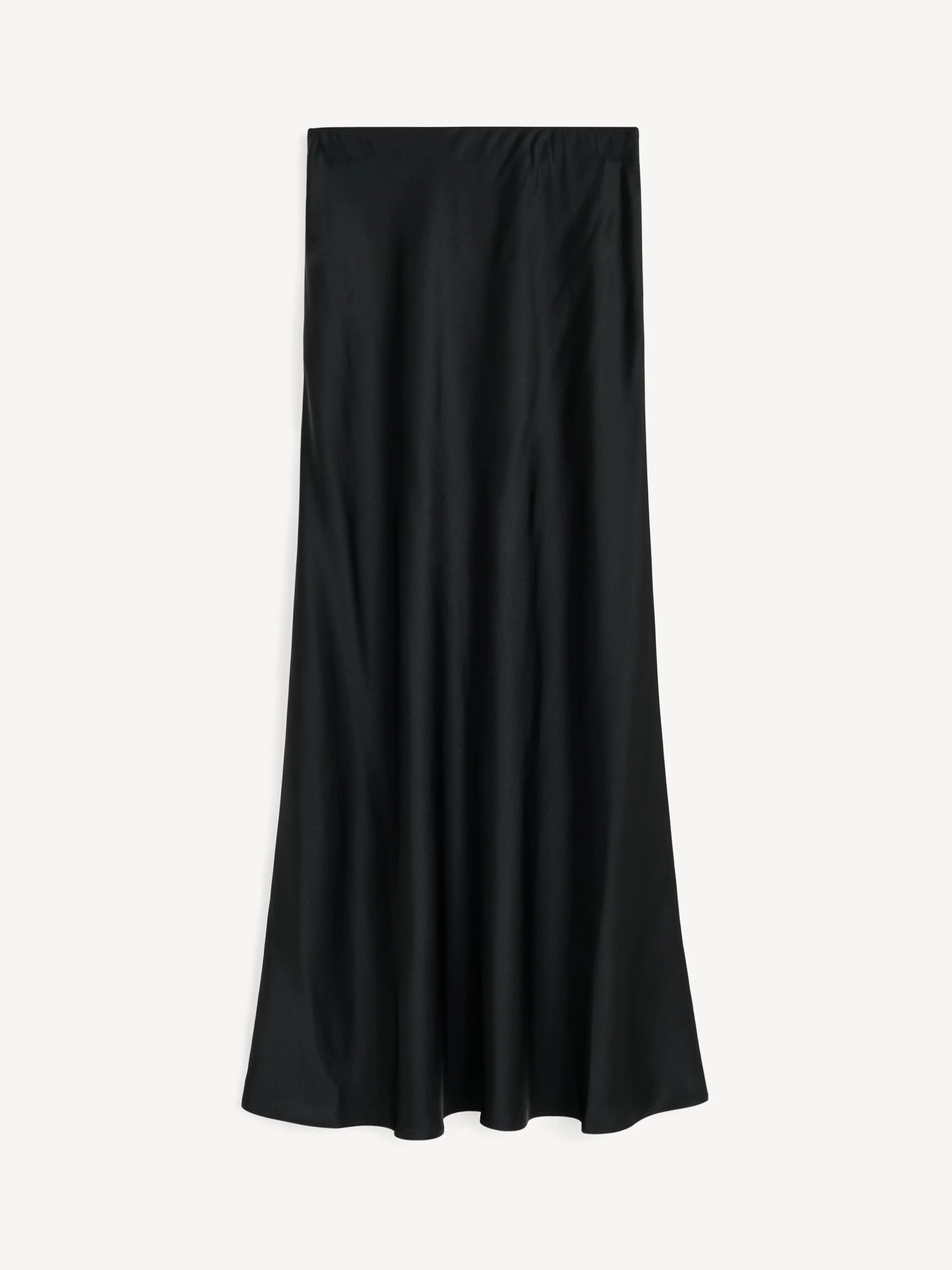 Falling languidly down the figure, the Barbara skirt is equally elegant and easy to wear. Designed in a lustrous satin, it sits high on the waist and falls to a maxi hemline. Wear it with the Hys top. - Regular fit - Model is 177 cm and is wearing a size 36 - Elastic waistband - Flared silhouette - Eastman Naia™ is a cellulosic fibre produced from responsibly sourced wood pulp. It is quick drying, biodegradable, supremely soft and comfortable to wear DETAILS COLOUR Black COMPOSITION 76% acetate, 24% polyester CARE Delicate machine wash at 30°c PRODUCT CODE Style #103564050