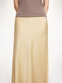 Falling languidly down the figure, the Barbara skirt is equally elegant and easy to wear. Designed in a lustrous satin, it sits high on the waist and falls to a maxi hemline. Wear it with the Hys top. - Regular fit - Model is 177 cm and is wearing a size 36 - Elastic waistband - Flared silhouette - Eastman Naia™ is a cellulosic fibre produced from responsibly sourced wood pulp. It is quick drying, biodegradable, supremely soft and comfortable to wear DETAILS COLOUR Old Beige COMPOSITION 76% acetate, 24% polyester CARE Delicate machine wash at 30°c PRODUCT CODE Style #1035641Y4