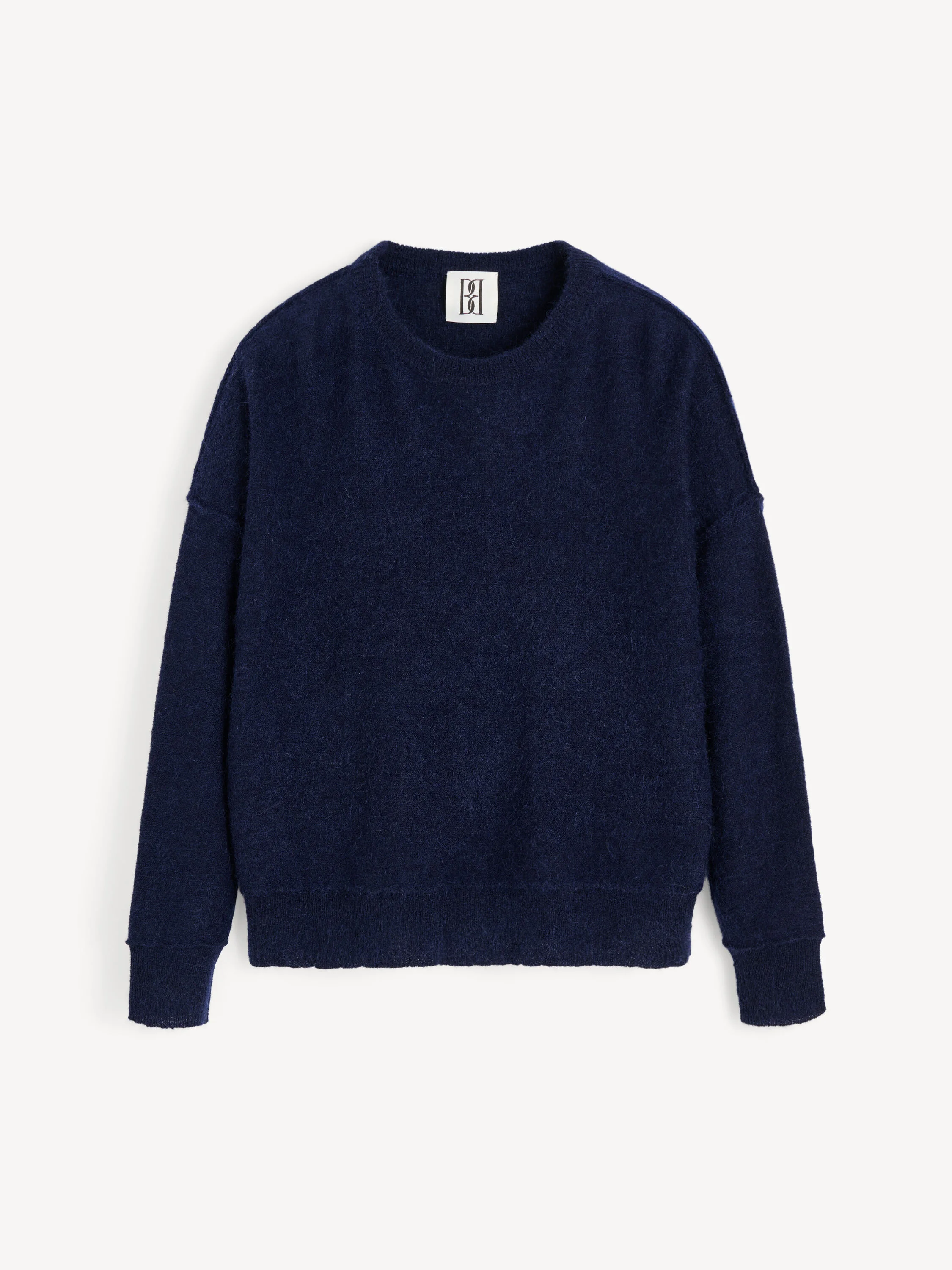 Crafted from a lightweight blend of wool and mohair, with a touch of stretch for comfort, this knitted sweater is cut for a relaxed, slightly oversized fit and has defining ribbed trims. - Oversized fit - Model is 177 cm and is wearing a size S - This product contains 34% RWS wool and 34% RMS mohair, certified by Control Union, CU 877742. Responsible Mohair Standard (RMS) & Wool standard (RWS) verifies animal welfare and land management requirements and tracks it from the source to the final product. - Ribbed trim DETAILS COLOUR Night Sky COMPOSITION 34% wool, 34% kidmohair, 27% polyamide, 5% elastane CARE Delicate machine wash at 30°c PRODUCT CODE Style #1017572Q4