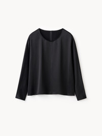 By Malene Birger Odelleys blouse with a straight silhouette, narrowing long sleeves, a U-neck, and a button closure at the back. It's made from a silk-touch blend that adds elegance to jeans and wool skirts. - Loose fit - Model is 174 cm and is wearing a size 36 - Eastman Naia™ is a cellulosic fibre produced from responsibly sourced wood pulp. It is quick drying, biodegradable, supremely soft and comfortable to wear - V-neck - Long sleeves - Button fastening DETAILS COLOUR Black COMPOSITION 76% acetate, 24% polyester CARE Delicate machine wash at 30°c PRODUCT CODE Style #101330050