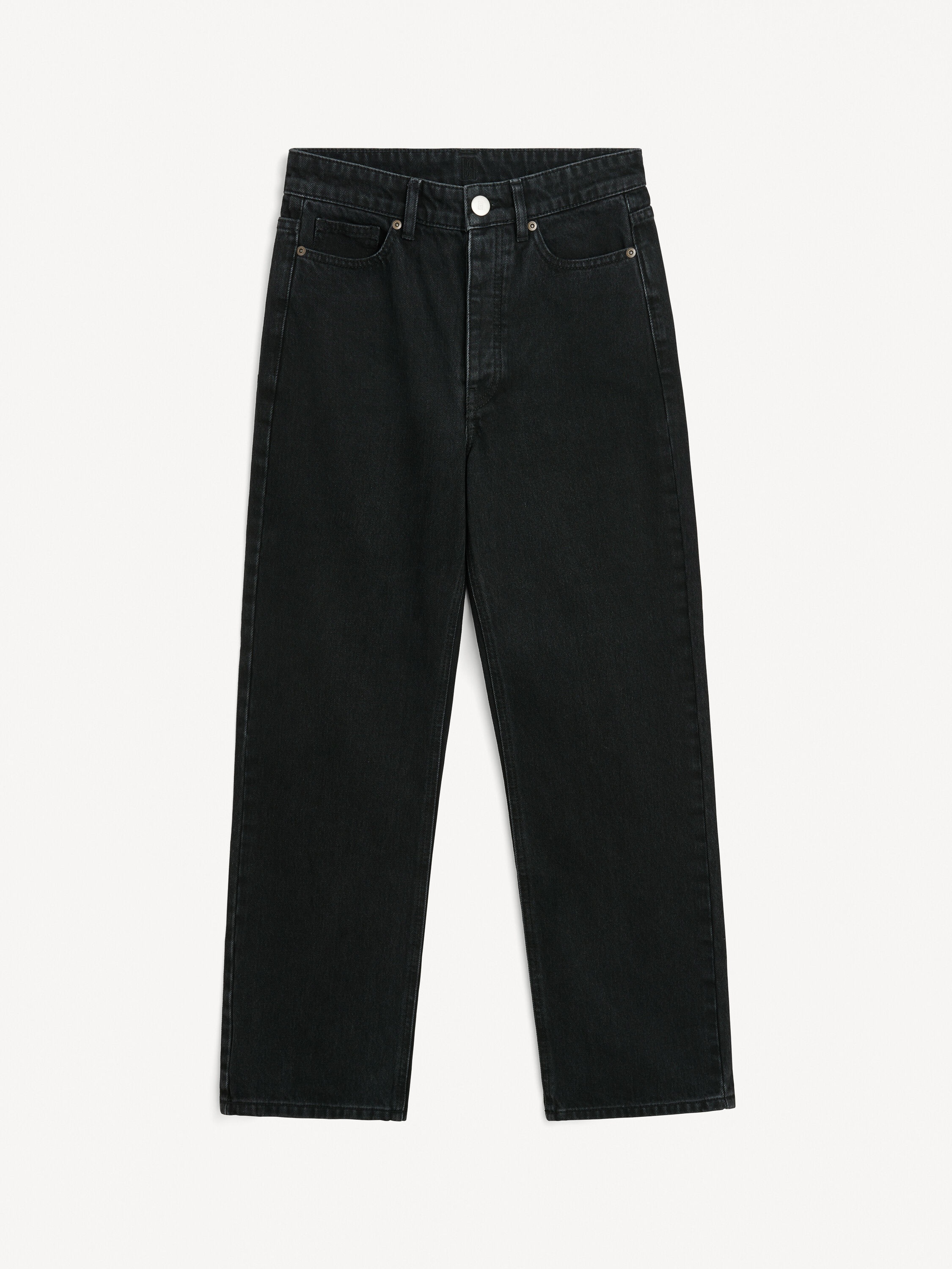 Detailed with exposed buttons at the fly, these stonewash denim jeans are cut in a straight-leg silhouette from organic cotton. They have a classic five-pocket construction and a regular fit, and the hems look cool rolled up. Wear them with a slouchy sweater. - Regular fit - Model is 175 cm and is wearing a size 27 - It is recommended that you choose one size up - Designed to sit mid waist - Straight leg - Exposed buttons DETAILS COLOUR Black COMPOSITION 100% cotton organic CARE Wash at 30°c PRODUCT CODE Style #101787050
