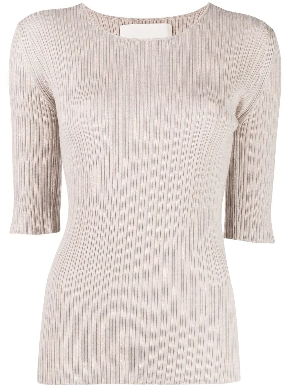 Blaise ribbed wool jumper light beige silk-merino wool ribbed knit round neck half-length sleeves stretch-design straight hem Imported Composition Merino 63%, Silk 21%, Elastane 16% Washing instructions Hand Wash