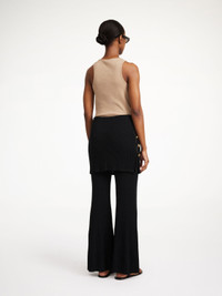Merging optimal comfort with contemporary ease, the Bolone trousers will add visual interest to any look. Designed in a comfortable rib fabrication, the flared trousers, integrated with a mini skirt, are detailed with contrast stitching and buttons on the side. Pair with the matching Cirella cardigan. - Regular fit - Model is 174 cm and is wearing a size S - Elastic waistband - Flared legs - Contrast stitching DETAILS COLOUR Black COMPOSITION 70% cotton, 30% polyamide recycled CARE Delicate machine wash at 30°c PRODUCT CODE Style #102102050