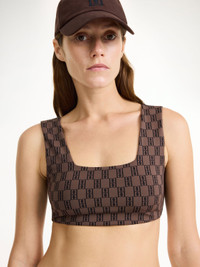 Whether you’re heading to the gym or running errands, the Braga sports top promises a comfortable fit. The sporty design is crafted with wide straps and a snug elastic band. Notice the small monogram motif in its front. - Slim fit - Model is 173 cm and is wearing a size S - Athleisure wear - Tight fit - Embroidered monogram - Elastic band DETAILS COLOUR Dark Mahogany COMPOSITION 46% polyamide recycled, 30% polyamide, 24% elastane CARE Wash at 40°c PRODUCT CODE Style #1023691K2