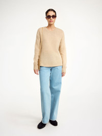 Knit from a blend of mohair and wool, the Briella sweater features ribbed trims along its round neckline and sleeves. Notice the small, embroidered monogram that gives detail to the timeless silhouette. - Loose fit - This product contains 49% RWS wool and 30% RMS mohair, certified by Control Union, CU 877742. Responsible Mohair Standard (RMS) & Wool standard (RWS) verifies animal welfare and land management requirements and tracks it from the source to the final product. - Round neck - Ribbed trims DETAILS COLOUR Twill Beige COMPOSITION 49% wool, 30% mohair, 21% polyamide CARE Hand wash PRODUCT CODE Style #10195618T