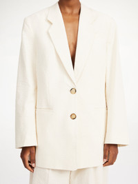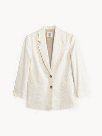Considered details and expert tailoring define the tactile Ophie blazer. Cut from an organic cotton-blend, it features classic details, such as a double vent, front pockets, notched lapels, and an inside breast pocket. For a full tailored look, pair with the matching Blaire waistcoat and Cymbaria trousers. - Loose fit - Model is 174 cm and is wearing a size 36 - Single-breasted - Double vent - Button closure - Front pockets - Notched lapels - Inside pocket DETAILS COLOUR Soft White COMPOSITION 98% cotton organic, 2% elastane CARE Dry clean only PRODUCT CODE Style #10223903Z