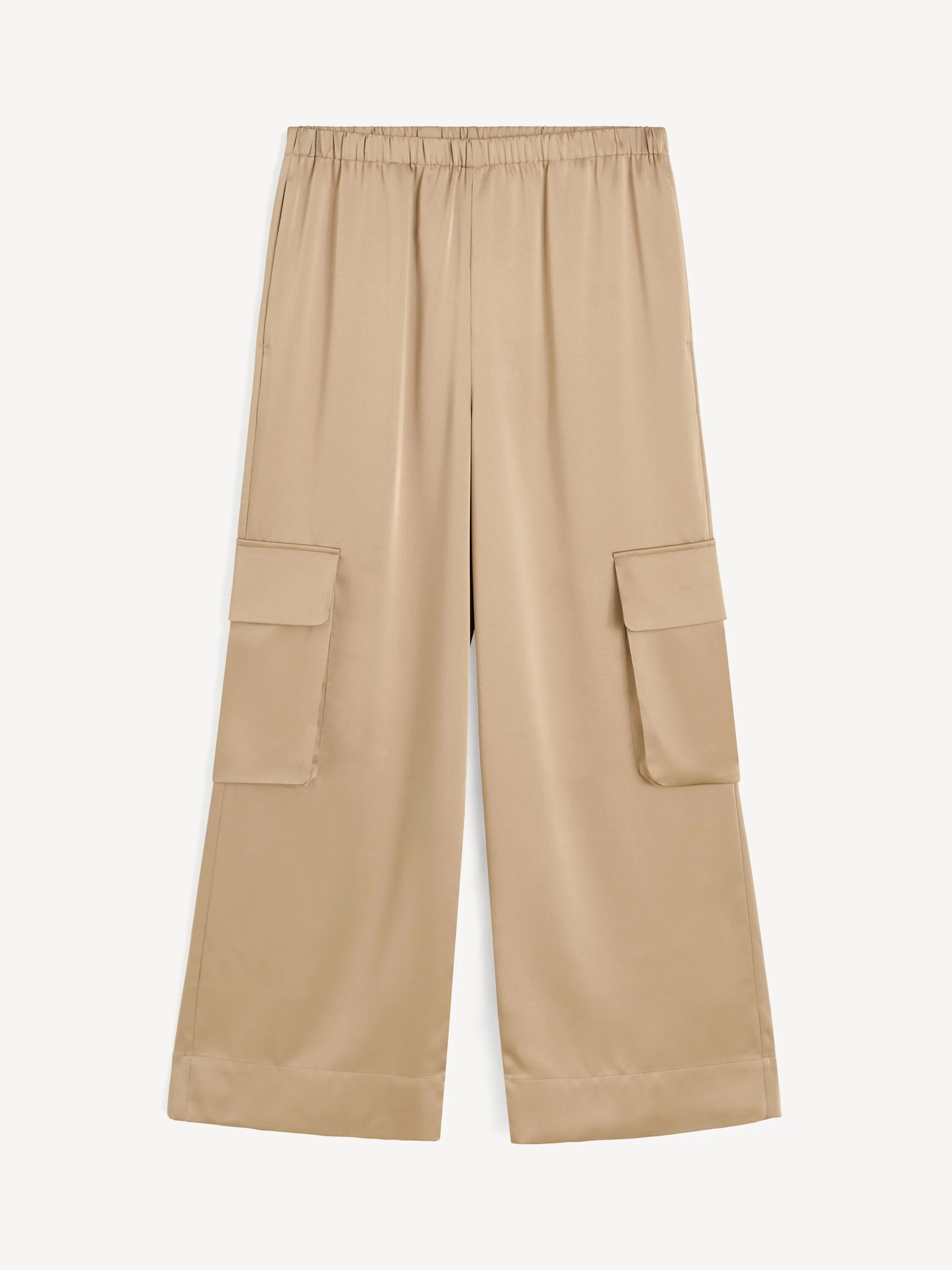 Add an element of practicality to your transseasonal wardrobe, courtesy of the Cabello Cargo trousers. Combining functionality with femininity, the classic cargo silhouette is made in a lush satin. It has large pockets on its side and a snug elastic waist. - Loose fit - Elastic waistband - Cargo pockets - Wide legs - Eastman Naia™ is a cellulosic fibre produced from responsibly sourced wood pulp. It is quick drying, biodegradable, supremely soft and comfortable to wear DETAILS COLOUR Kelp COMPOSITION 85% acetate, 15% polyester CARE Delicate machine wash at 30°c PRODUCT CODE Style #1034691Y7