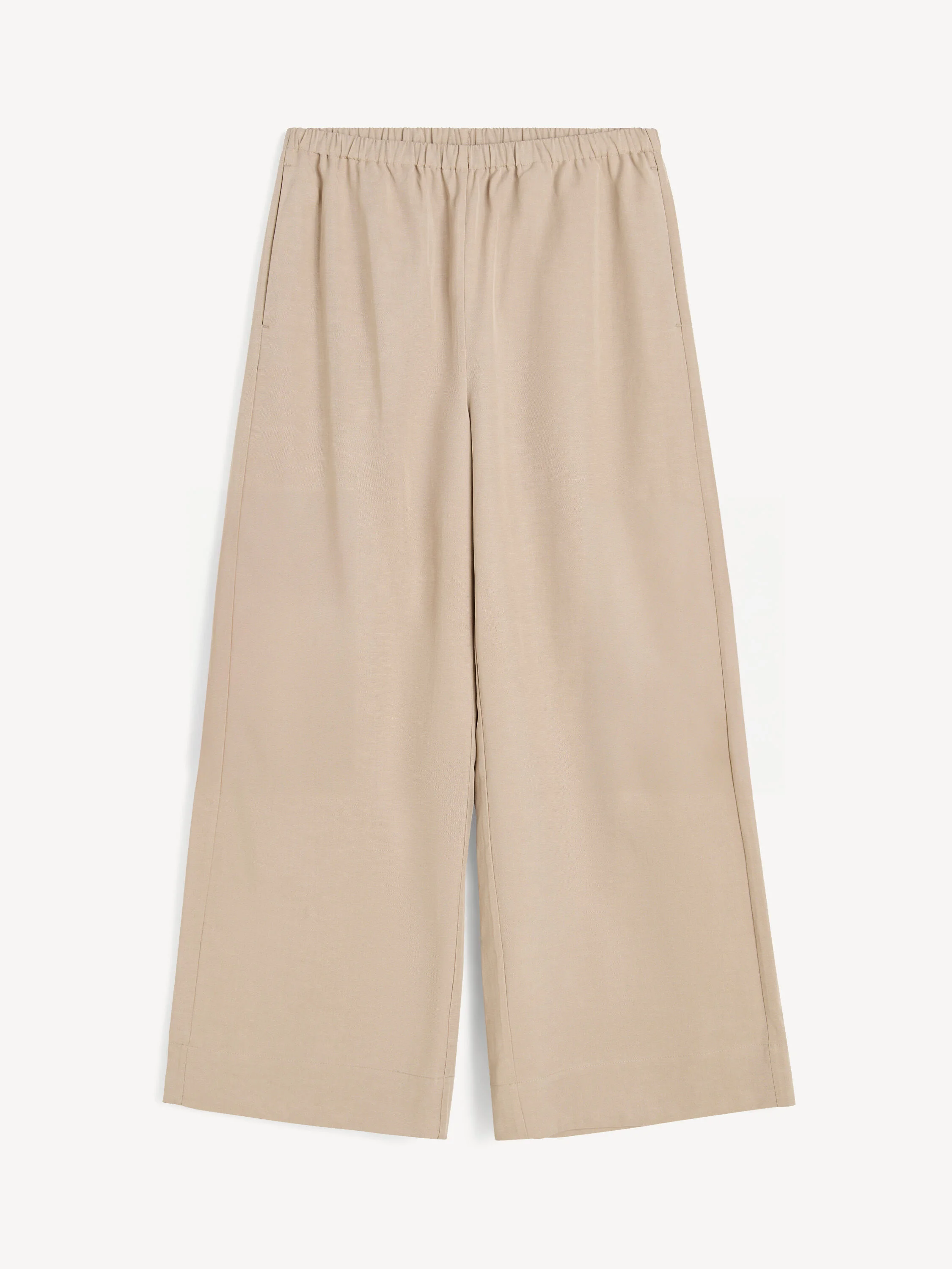 Add an element of practicality to your transseasonal wardrobe, courtesy of the Cabello trousers. Inspired by the classic cargo pants, the wide-leg design has large pockets on its side and a snug elastic waist. Create a playful look by pairing with the season’s ladylike uppers. - Loose fit - Model is 177 cm and is wearing a size 36 - Elastic waistband - Cargo pockets - Wide legs DETAILS COLOUR Tehina COMPOSITION 83% lyocell (tencel (TM)), 17% linen CARE Delicate machine wash at 30°c PRODUCT CODE Style #1035681T3
