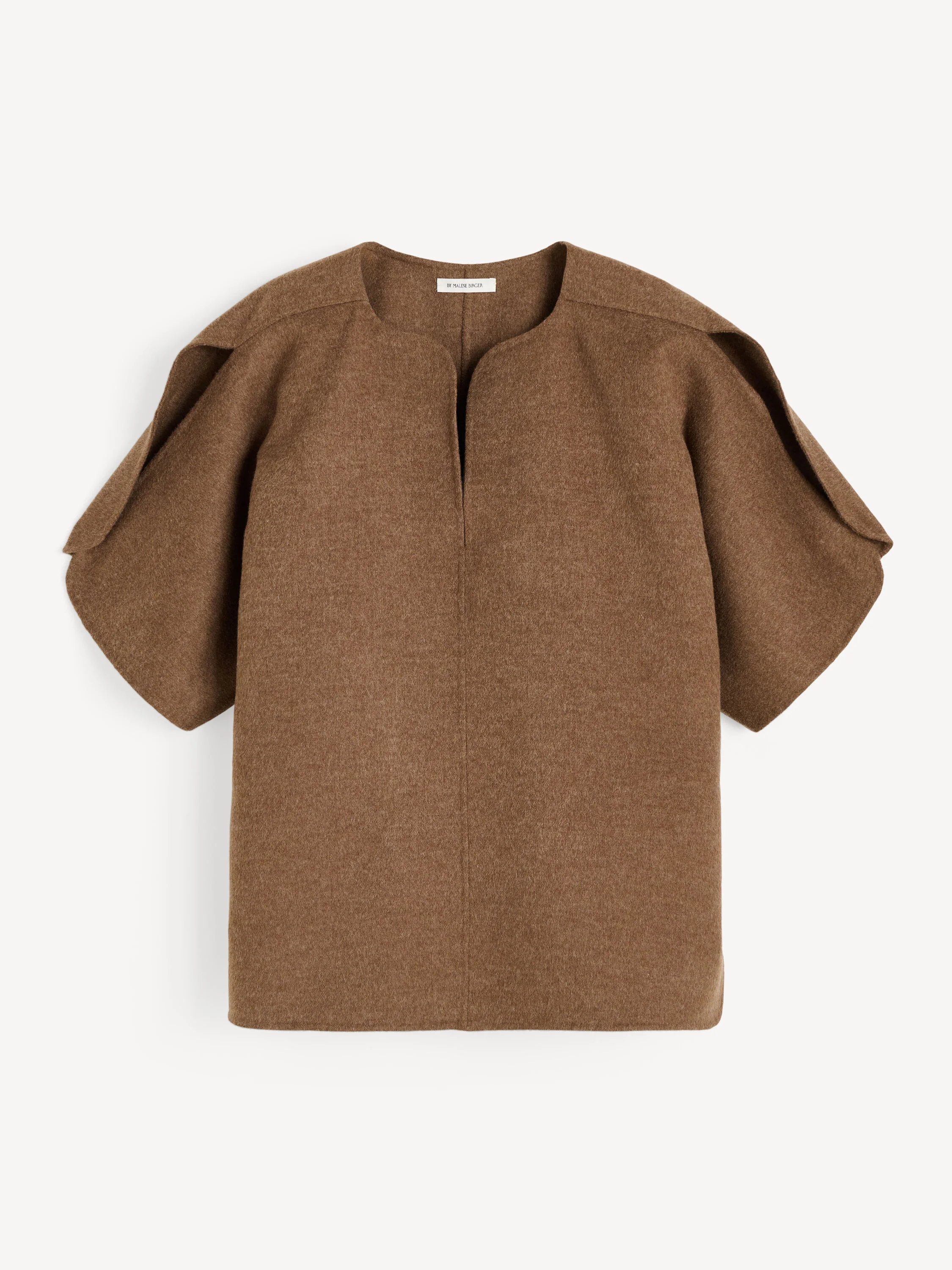 Made for the slow shift to colder weather, the Calle blouse is designed in a compact wool. It provides an elegant modus, courtesy of the deep V-neck and high slits on the sleeves. Wear with skirts and trousers alike. - Loose fit - Model is 177 cm and is wearing a size 36 - V-neck - Short sleeves with high slits - Side slits - This product contains 100% RWS wool, certified by Control Union, CU 877742. The Responsible Wool standard (RWS) verifies animal welfare and land management requirements and tracks it from the farm to the final product DETAILS COLOUR Dark Brown Melange COMPOSITION 100% wool CARE No Wash PRODUCT CODE Style #103408M35