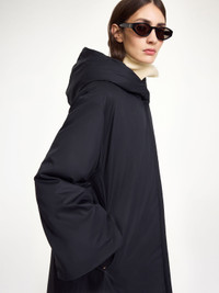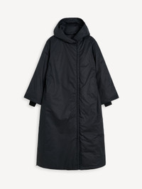 Comfort and cool in equal measure define the Camie coat. Cut from a padded fabrication with recycled cotton to a voluminous silhouette, the design promises instant warmth. It’s completed with a large adjustable hoodie, an adjustable hemline, inner and side pockets and a zip closure. Wear on the coldest days of the year. - Loose fit - Model is 177 cm and is wearing a size 36 - Ankle length - Large hoodie - Adjustable hem - Inner pocket - Side pockets - Rib cuffs - Zip closure DETAILS COLOUR Black COMPOSITION 100% cotton recycled CARE Delicate machine wash at 30°c PRODUCT CODE Style #103513050