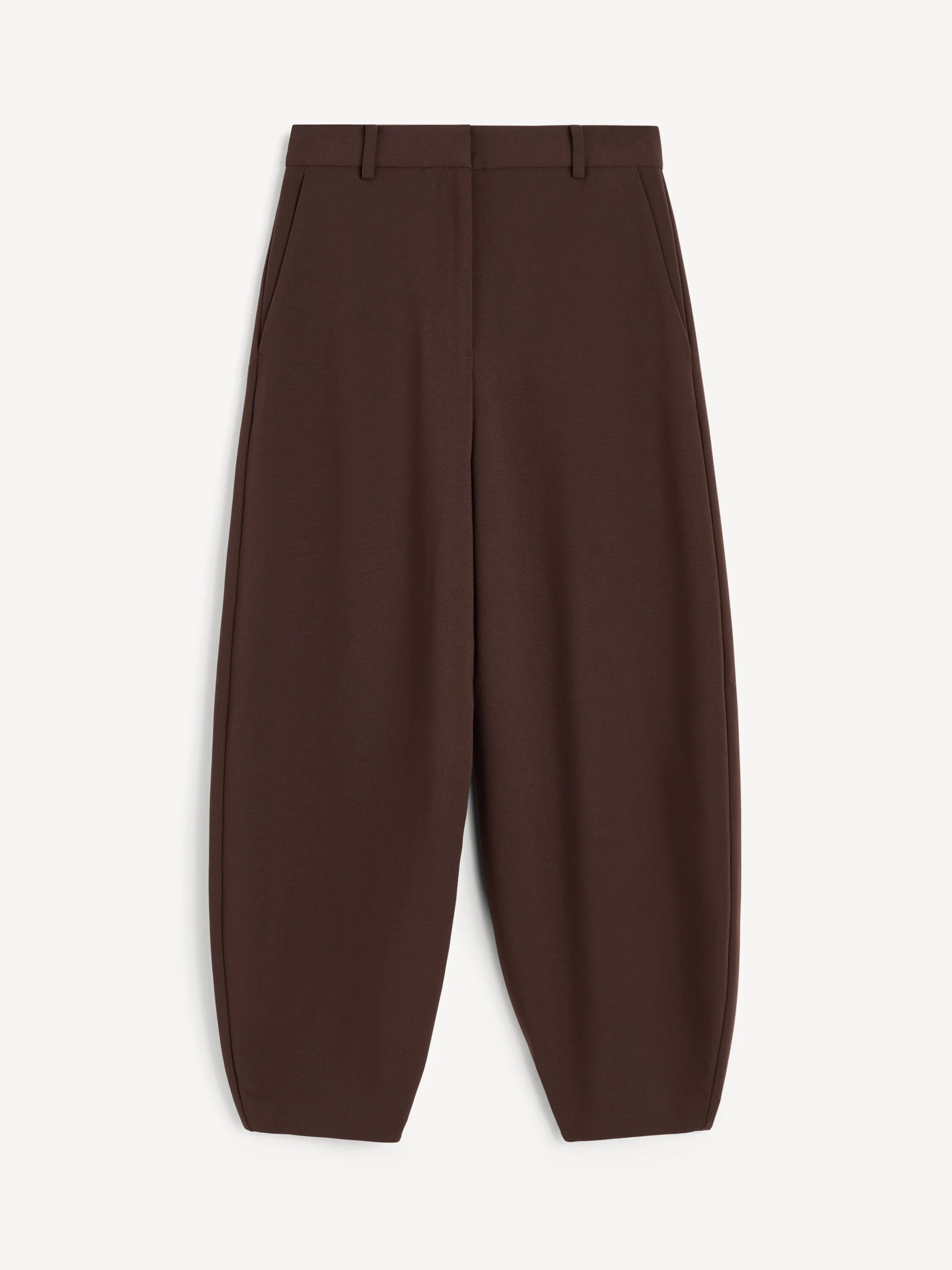 Cut in the season's tapered leg silhouette, the Carlien trousers are made from a scuba-like fabrication. They’re crafted with classic office-wear details, such as side pockets, belt loops and a zip, hook, and button closure. - Regular fit - Model is 177 cm and is wearing a size 36 - Zip, hook and button closure - High waist - Side pockets - Belt loops - Wide tapered legs DETAILS COLOUR Coffee Brown COMPOSITION 64% polyester recycled, 33% viscose, 3% elastane CARE Delicate machine wash at 30°c PRODUCT CODE Style #1020921BM