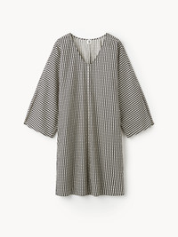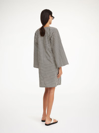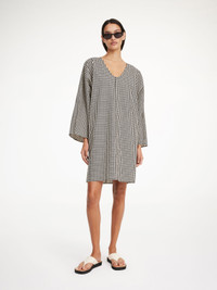 As the temperatures rise, you will reach for the versatile Ceila dress again and again. Crafted from organic cotton, the relaxed design features a deep V-neck, wide sleeves, and a loose silhouette in By Malene Birger’s monogram print. - Loose fit - Model is 174 cm and is wearing a size 36 - V-neck - Monogram print - Wide sleeves with side slits DETAILS COLOUR Black monogram COMPOSITION 100% cotton organic CARE Wash at 30°c PRODUCT CODE Style #102057QB1