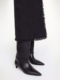 Well-constructed and classic leather boots – such as the Ceras design – will truly last years to come. Set on a low heel and with a sharp toe, the boots’ wide shafts are contrasted by a thin strap, detailed with the monogram motif. Wear with skirts, trousers and dresses alike. - Knee-high - Low heel - Wide shaft - Pointed toe - Thin boot strap with monogram - Pull tabs - Heel height 4,5cm - By purchasing this product, you are supporting responsible leather manufacturing via the Leather Working Group DETAILS COLOUR Black COMPOSITION 100% calf leather PRODUCT CODE Style #103641050