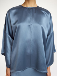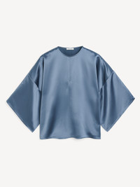 Sophistication and ease define the Cicie blouse. Made to add elegance to work- and eveningwear alike, the satin design has dropped shoulders, wide cropped sleeves, and a deep neckline that can be closed with a discreet clasp. - Oversized fit - Model is 175 cm and is wearing a size 36 - Dropped shoulders - Wide sleeves - Low neckline - Clasp closure - Eastman Naia™ is a cellulosic fibre produced from responsibly sourced wood pulp. It is quick drying, biodegradable, supremely soft and comfortable to wear DETAILS COLOUR Grisaille COMPOSITION 76% acetate, 24% polyester CARE Delicate machine wash at 30°c PRODUCT CODE Style #102500056