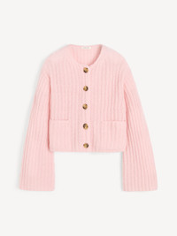 A wool mix cardigan – such as the Cierrou Rib design – is key to transitional dressing. The slightly cropped silhouette is made in a rib fabrication and completed with snug buttons and front pockets. Use it as a layering piece over dresses, shirts and T-shirts – and peel it on and off depending on the weather. - Loose fit - Model is 177 cm and is wearing a size S - Button closure - Rib knit - Buttoned cuffs - Long sleeves - Front pockets - This product contains 49% RWS wool and 30% RMS mohair, certified by Control Union, CU 877742. Responsible Mohair Standard (RMS) & Wool standard (RWS) verifies animal welfare and land management requirements and tracks it from the farm to the final product DETAILS COLOUR Chalk Pink COMPOSITION 49% wool, 30% mohair, 21% polyamide CARE Hand wash PRODUCT CODE Style #1034215B4