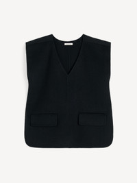 A versatile layering piece as the weather transitions, the Cilia vest is made in a heavy wool. Referencing the season’s practical inspiration, it’s completed with front pockets, dropped arm openings, and side slits. Wear on its own on warmer days or layer over a shirt. - Oversized fit - Model is 177 cm and is wearing a size 36 - Deep V-neck - Front pockets - Dropped arm openings - Side slits - This product contains 100% RWS wool, certified by Control Union, CU 877742. The Responsible Wool standard (RWS) verifies animal welfare and land management requirements and tracks it from the farm to the final product DETAILS COLOUR Black COMPOSITION 100% wool CARE Dry clean only PRODUCT CODE Style #103409050