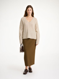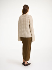 Ideal for autumn and winter, the Cimone sweater is spun from a supersoft blend of mohair and wool. The cable-knit design, relaxed V-neck and wide sleeves underpin its laidback mood. Wear yours with skirts, dresses and trousers alike depending on your mood. - Loose fit - Model is 173 cm and is wearing a size S - V-neck - Long, wide sleeves - This product contains 49% RWS wool and 30% RMS mohair, certified by Control Union, CU 877742. Responsible Mohair Standard (RMS) & Wool standard (RWS) verifies animal welfare and land management requirements and tracks it from the farm to the final product. DETAILS COLOUR Oyster Gray COMPOSITION 49% wool, 30% mohair, 21% polyamide CARE Hand wash PRODUCT CODE Style #1022691CT
