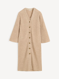 Designed in a neutral hue that works with everything in your wardrobe, the Cimonello cardigan is made from a warm wool and mohair mix. Its classic button closure and V-neck contrast the bold maxi silhouette. Use as a versatile layer or as a snug maxi dress. - Loose fit - Model is 177 cm and is wearing a size S - Buttoned closure - V-neck - Rib fabrication - Dropped shoulders - This product contains 49% RWS wool and 30% RMS mohair, certified by Control Union, CU 877742. Responsible Mohair Standard (RMS) & Wool standard (RWS) verifies animal welfare and land management requirements and tracks it from the farm to the final product DETAILS COLOUR Twill Beige COMPOSITION 49% wool, 30% mohair, 21% polyamide CARE Hand wash PRODUCT CODE Style #10320718T