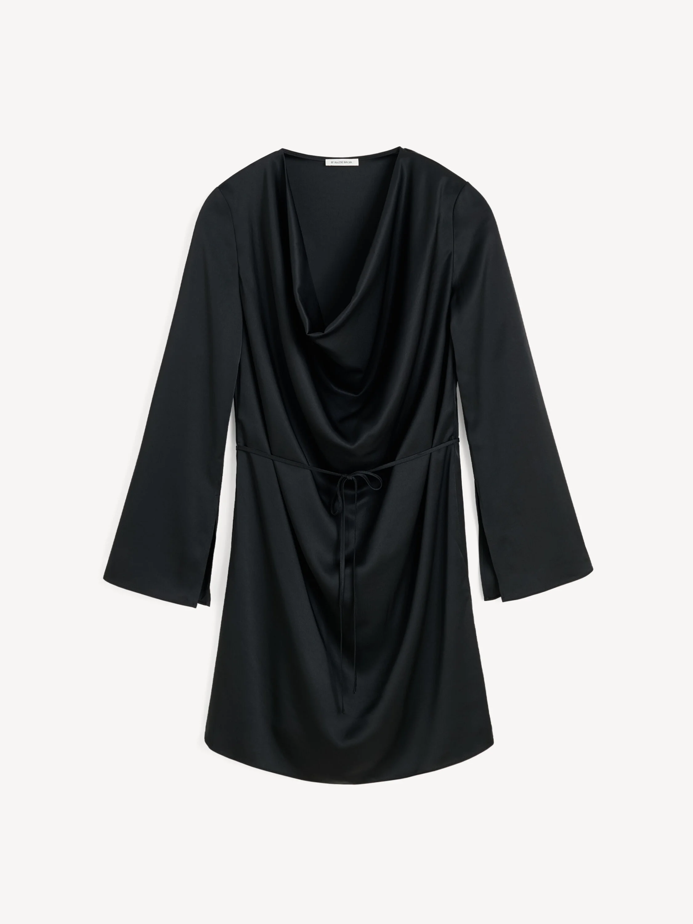The Cornelia midi dress is made for the after-hours. The delicate silhouette is highlighted by a low draped neckline, neat slits on the sleeves and a thin waist belt that’s fully detachable. Wear with low heels for the season’s soirees. - Regular fit - Model is 177 cm and is wearing a size 36 - Low draped neckline - Detachable belt - Straight silhouette - Eastman Naia™ is a cellulosic fibre produced from responsibly sourced wood pulp. It is quick drying, biodegradable, supremely soft and comfortable to wear DETAILS COLOUR Black COMPOSITION 85% acetate, 15% polyester CARE Delicate machine wash at 30°c PRODUCT CODE Style #103431050