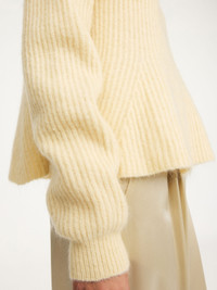 A feminine and warm staple for everyday dressing, the Cova sweater is made in a mohair-wool mix. The slightly cropped silhouette is cinched at the waist. Wear it with the Dox mini skirt and Aya phone pouch tied around your waist for a playful look this season — and the next. - Loose fit - Model is 178 cm and is wearing a size S - V-neck - Flared silhouette - Rib cuffs - Cropped silhouette - This product contains 49% RWS wool and 30% RMS mohair, certified by Control Union, CU 877742. Responsible Mohair Standard (RMS) & Wool standard (RWS) verifies animal welfare and land management requirements and tracks it from the farm to the final product DETAILS COLOUR Sea Mist COMPOSITION 49% wool, 30% mohair, 21% polyamide CARE Hand wash PRODUCT CODE Style #1030030AJ