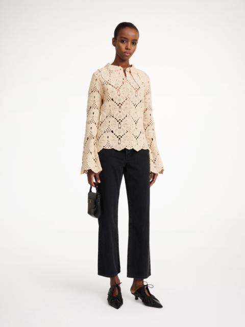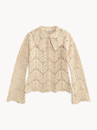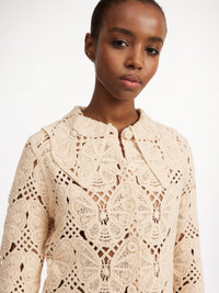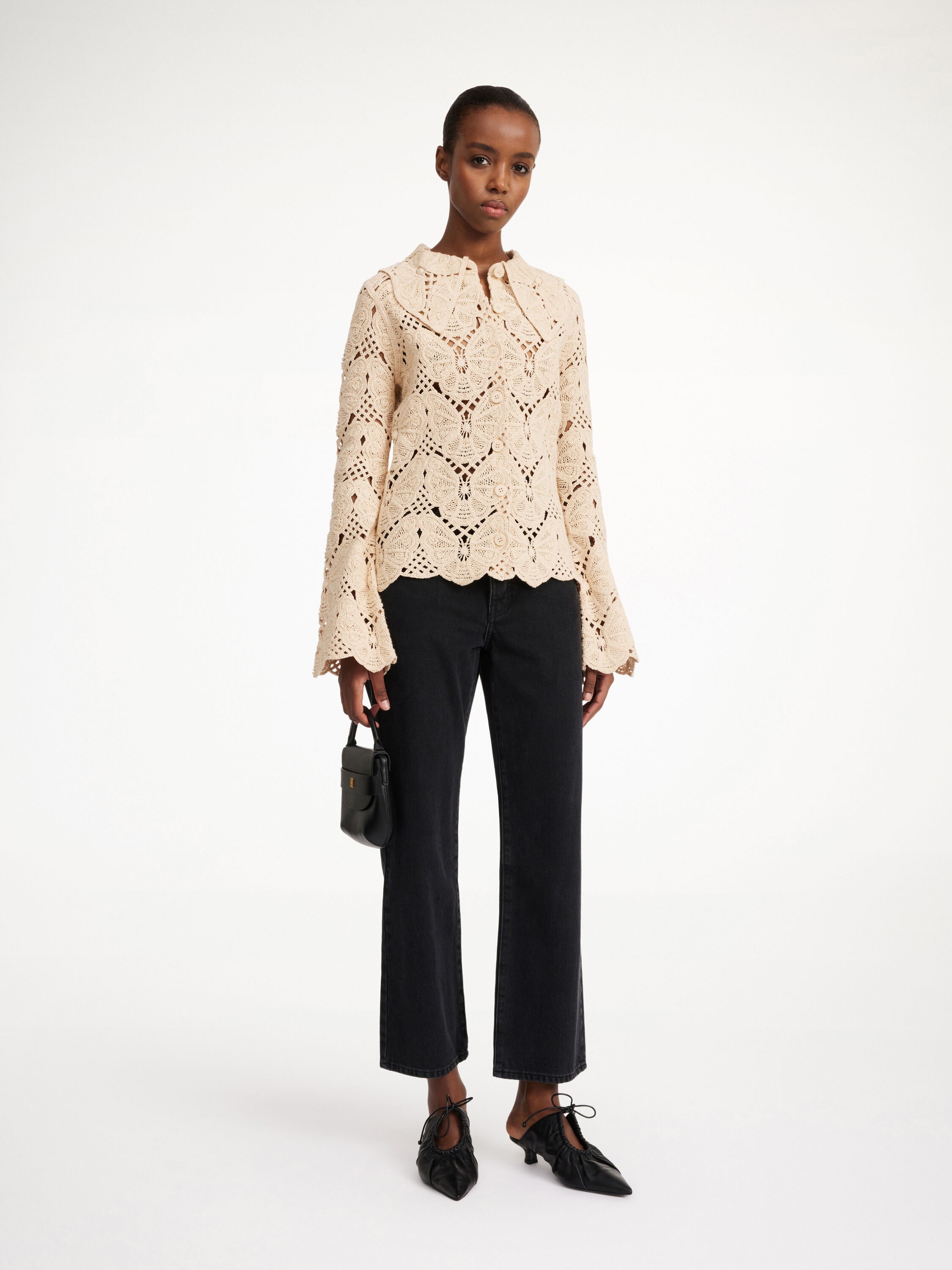 With a vintage-inspired vibe, the Gwenevere shirt is made in a distinctive butterfly crochet. Ultrafeminine, the delicate silhouette is detailed with a large, curved collar, elongated sleeves, and buttons down the front. Pair with the matching Cantala skirt or over the Falla dress. - Regular fit - Model is 174 cm and is wearing a size S - Butterfly crochet - Button closure - Unlined DETAILS COLOUR Oyster Gray COMPOSITION 100% cotton CARE Hand wash PRODUCT CODE Style #1021531CT