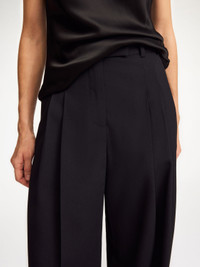 By Malene Birger’s beloved Cymbaria trousers showcase a pared-back approach to traditional tailoring. Shaped to a high-rise waistband that is punctuated with both belt loops and sharp pleats, this design falls to wide legs in keeping with the season's penchant for flowing fits and versatile styling. - Loose fit - Model is 175 cm and is wearing a size 36 - High waist - Belt loops - Wide legs DETAILS COLOUR Black COMPOSITION 68% polyester, 29% viscose, 3% elastane CARE Delicate machine wash at 30°c PRODUCT CODE Style #101829050