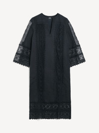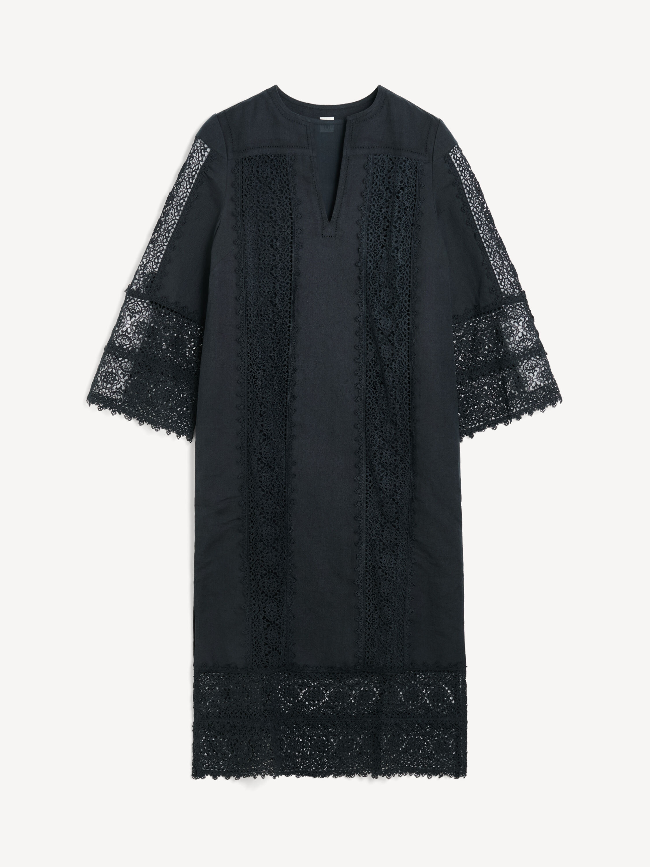 Evoking the romance of summer, the Delane maxi dress is adorned with embroidered lace. Inspired by the classic kaftan, the longline lined silhouette has a V-neck and wide cropped sleeves. Wear simply with a pair of flats. - Loose fit - Model is 175 cm and is wearing a size 36 - Lined - Embroidered lace - Side slits - V-neck - Cropped sleeves DETAILS COLOUR Black COMPOSITION 52% linen, 48% cotton CARE Hand wash PRODUCT CODE Style #103226050