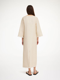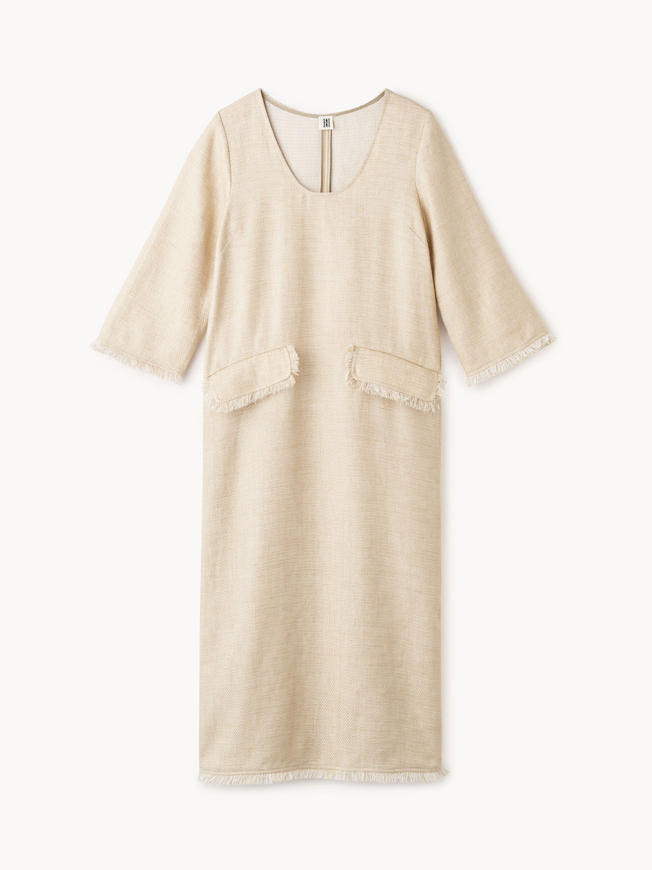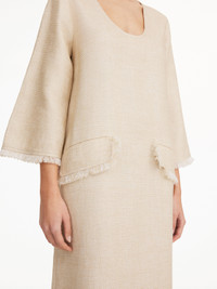 Linen is a recurring theme for the season, and the Delany dress is a both breezy and bohemian starting point. Fringes decorate the trims on both sleeves, front pockets, and the maxi length bottom. Wear with the Rafiah hat on your summer escape. - Model is 174 cm and is wearing a size 36 - This item runs small so we would recommend you choose one size up - Round neck - Fringe trims - Flap pockets - Zip closure DETAILS COLOUR Wood COMPOSITION 60% linen organic, 21% polyester, 19% viscose CARE Dry clean only PRODUCT CODE Style #1021481U3