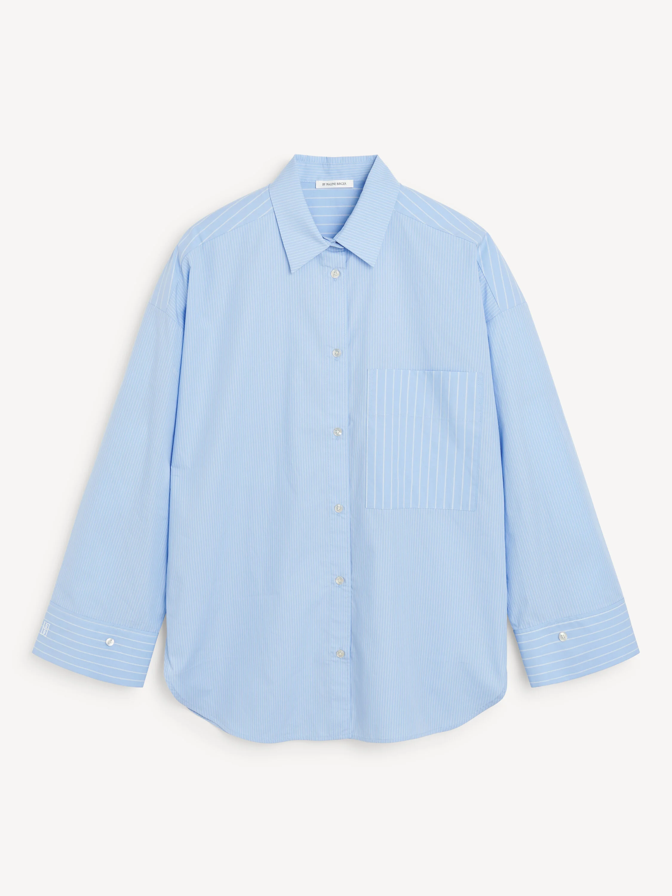 A classic shirt will carry you beyond a single season, and this organic cotton style is a piece you'll reach for time and time again. It has buttons throughout the front and a smart shirt collar. Tuck it into tailored trousers or layer over boyfriend jeans. - Oversized fit - Model is 175 cm and is wearing a size 36 - Designed with an oversized fit, so we recommend you take your own size for the intended fit or one size down for a more classic fit - Button placket - Rounded hems - Front patch pocket DETAILS COLOUR Blue Iris Stripe Small COMPOSITION 100% cotton organic CARE Wash at 30°c PRODUCT CODE Style #103165QR3