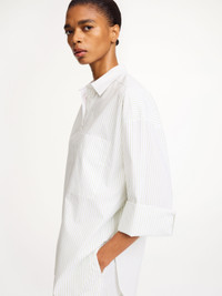 A classic shirt will carry you beyond a single season, and this organic cotton style is a piece you'll reach for time and time again. It has buttons throughout the front and a smart shirt collar. Tuck it into tailored trousers or layer over boyfriend jeans. - Oversized fit - Model is 179 cm and is wearing a size 36 - Designed with an oversized fit, so we recommend you take your own size for the intended fit or one size down for a more classic fit - Button placket - Rounded hems - Front patch pocket DETAILS COLOUR Twin Stripe COMPOSITION 100% cotton organic CARE Wash at 30°c PRODUCT CODE Style #103165QG5