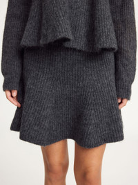 A design made to be worn as the temperatures fluctuate, the Dox mini skirt is designed in a mohair-wool mix that offers warmth and comfort in equal measure. For a feminine and playful everyday look, wear it with the Cova sweater and the Aya phone pouch tied around your waist. - Regular fit - Model is 178 cm and is wearing a size S - Flared silhouette - Elastic waistband - This product contains 49% RWS wool and 30% RMS mohair, certified by Control Union, CU 877742. Responsible Mohair Standard (RMS) & Wool standard (RWS) verifies animal welfare and land management requirements and tracks it from the farm to the final product DETAILS COLOUR Grey Melange COMPOSITION 49% wool, 30% mohair, 21% polyamide CARE Hand wash PRODUCT CODE Style #102525T5M