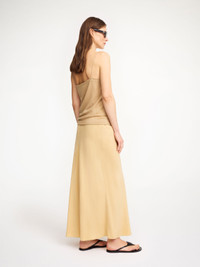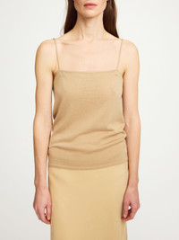 Designed in a wool and silk fabrication that feels both weighted and fluid, the Edel top will transcend seasons. Dangling from thin straps to a straight neckline, the minimalist design can be styled with just about anything in your wardrobe. Notice the small, embroidered monogram on its side. - Regular fit - Model is 177 cm and is wearing a size S - Knitted fabrication - Thin straps - Straight neckline - Embroidered monogram - Contains TENCEL™ Lyocell fibers - TENCEL™ is a trademarks of Lenzing AG - This product contains 32% RWS wool, certified by Control Union, CU 877742. The Responsible Wool standard (RWS) verifies animal welfare and land management requirements and tracks it from the farm to the final product DETAILS COLOUR Dark Sand COMPOSITION 60% lyocell (tencel (TM)), 32% wool, 8% silk CARE Hand wash PRODUCT CODE Style #103294144