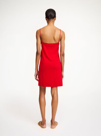A modern staple as the temperatures rise, the Edello dress is made in a silk and wool mix with a hint of stretch. Endlessly wearable, the mini design has thin straps and a silhouette that frames the figure. - Regular fit - Model is 179 cm and is wearing a size S - Embroidered monogram - Straight neckline - Contains TENCEL™ Lyocell fibers - TENCEL™ is a trademarks of Lenzing AG - This product contains 27% RWS wool, certified by Control Union, CU 877742. The Responsible Wool standard (RWS) verifies animal welfare and land management requirements and tracks it from the farm to the final product DETAILS COLOUR Pompeian Red COMPOSITION 51% lyocell (tencel (TM)), 27% wool, 7% silk, 15% elastane CARE Hand wash PRODUCT CODE Style #1034385Z7
