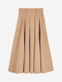 Warm and voluminous, the Eden Wool skirt is made in a mix of cashmere, wool and silk. The A-line silhouette is detailed with a zip closure, belt loops and side pockets – and completed with flattering creases in both front and back. Pair with the Mag sweater. - Regular fit - Model is 178 cm and is wearing a size 36 - Wide A-line silhouette - Zip closure - Belt loops - Side pockets - Front and back creases - This product contains 80% RWS wool, certified by Control Union, CU 877742. The Responsible Wool standard (RWS) verifies animal welfare and land management requirements and tracks it from the farm to the final product DETAILS COLOUR Medium Beige Melange COMPOSITION 80% wool, 10% silk, 10% cashmere CARE No Wash PRODUCT CODE Style #103606M17