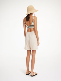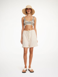No spring edit is complete without a pair of linen shorts, such as the Josea design. They feature a high-rise waistband that can be adjusted with drawstrings, wide legs, and folded hems. - Loose fit - Model is 174 cm and is wearing a size 36 - Drawstring - Folded hem DETAILS COLOUR Wood COMPOSITION 55% linen, 45% viscose CARE Wash at 30°c PRODUCT CODE Style #1021291U3