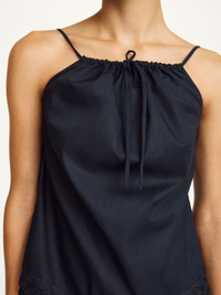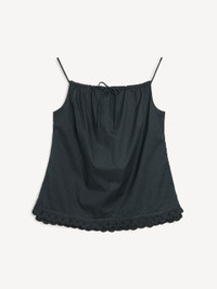 A favourite as the temperatures rise, the Elle top is a must in any bohemian edit. Made from organic cotton, the short design has adjustable thin straps that ties at the chest, made to fit your shape. The hemline is detailed with the season’s noteworthy bohemian lace. - Regular fit - Model is 175 cm and is wearing a size 36 - Adjustable thin straps - Embroidered lace DETAILS COLOUR Black COMPOSITION 100% cotton organic CARE Delicate machine wash at 30°c PRODUCT CODE Style #103096050