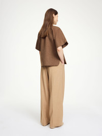 Made for the office hours – and beyond – the Elsa Wool trousers are made in a mix of cashmere, wool and silk. Inspired by the tailored classic, they’re completed with a zip, button and hook closure, belt loops, side- and back pockets, and creases both front and back. - Regular fit - Model is 177 cm and is wearing a size 36 - High waisted - Zip, button and hook closure - Belt loops - Side pockets - Back pockets - Wide legs - Front and back crease - This product contains 80% RWS wool, certified by Control Union, CU 877742. The Responsible Wool standard (RWS) verifies animal welfare and land management requirements and tracks it from the farm to the final product DETAILS COLOUR Medium Beige Melange COMPOSITION 80% wool, 10% silk, 10% cashmere CARE No Wash PRODUCT CODE Style #103507M17