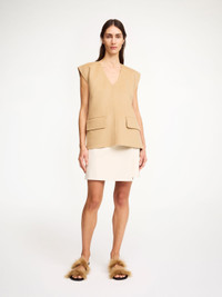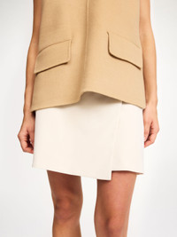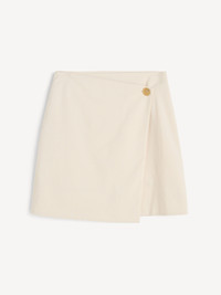A fresh and minimal take on the wrap skirt, the Esma design is accented with a single button on its front. Wear yours with everything from shirts and blazers to knitwear as the weather – and occasion – transitions. - Regular fit - Model is 177 cm and is wearing a size 36 - Wrap silhouette - Button closure - Fully lined - Contains LENZING™ ECOVERO™ viscose fibers - "LENZING™ and ECOVERO™ are trademarks of Lenzing AG DETAILS COLOUR Pearl COMPOSITION 69% polyester recycled, 30% viscose (lenzing (TM) ecovero (T M) ), 1% elastane CARE Dry clean only PRODUCT CODE Style #1032681EE