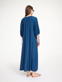 Slip into the elegant Lily dress when you’re in a bohemian mood. The longline silk-blend design has a wide silhouette and billowing sleeves that are tempered with adjustable ties. Wear with flats or heels - whatever your mood dictates. - Loose fit - Model is 177 cm and is wearing a size 36 - Adjustable ties in neck and sleeves - Deep neckline - Billowing sleeves DETAILS COLOUR Bright Ink COMPOSITION 70% viscose, 30% silk CARE Hand wash PRODUCT CODE Style #1036202S6